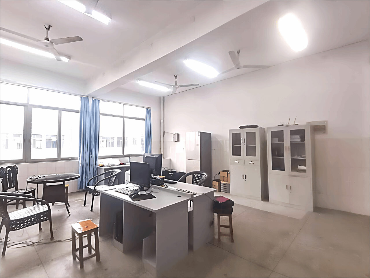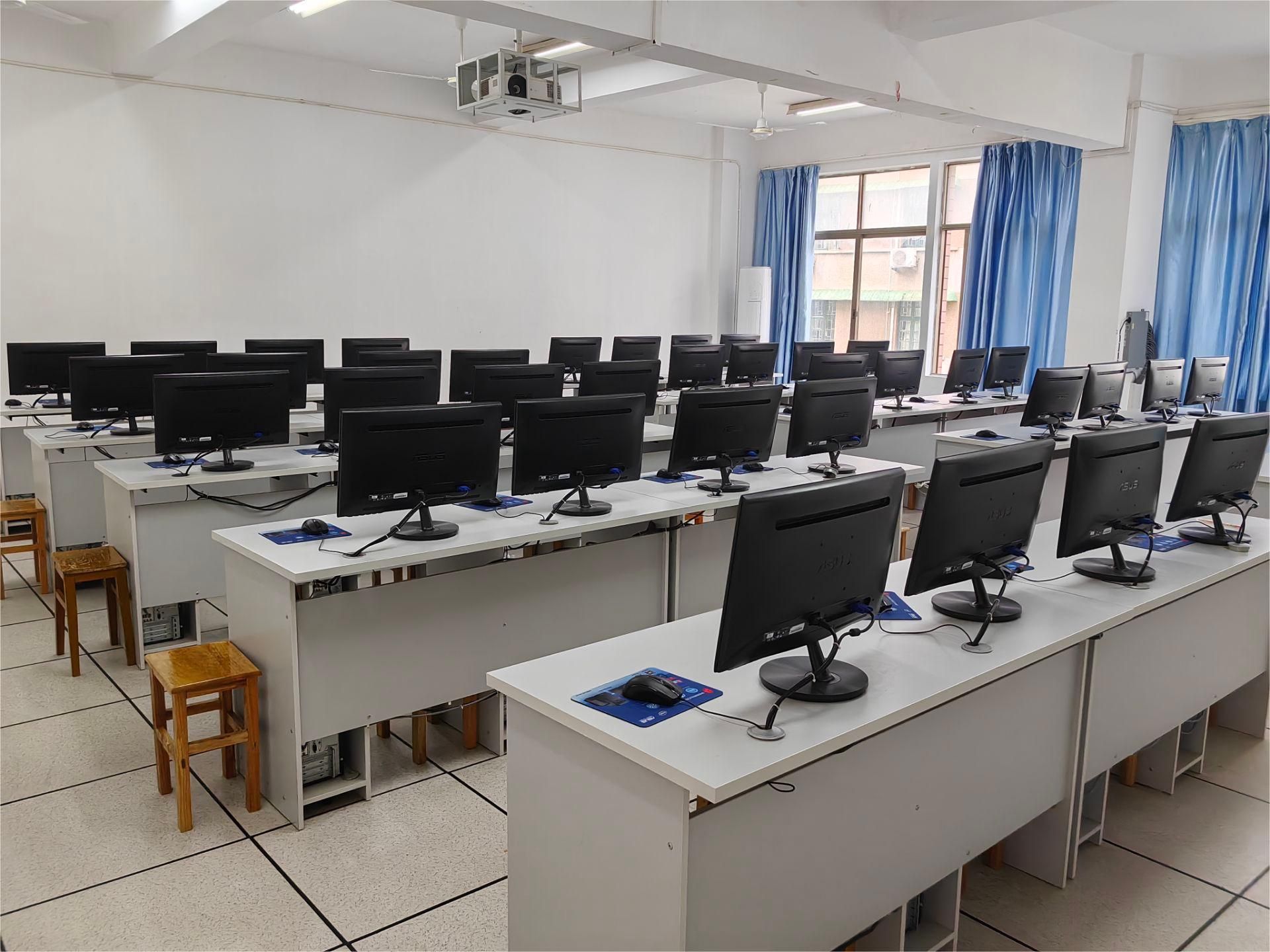 (1)414多媒体技术实验室,位于西校区行知楼四楼,建筑使用面积为80m2,配有40台微型电子计算机、多媒体投影系统、多媒体讲台、网络交换机等设备,承担了应用心理学、教育学、学前教育专业的《动画制作》《课件制作》《现代教育技术应用》等多媒体技术相关的实验及实践教学任务。学生通过多媒体制作软件的学习,能够提升信息化教学、课件制作、办公、平面制作的能力。另外实验室还在课余时间向学生开放,支持网页设计、多媒体制作等训练和比赛活动,还可承担与多媒体设计制作相关的科研开发任务。