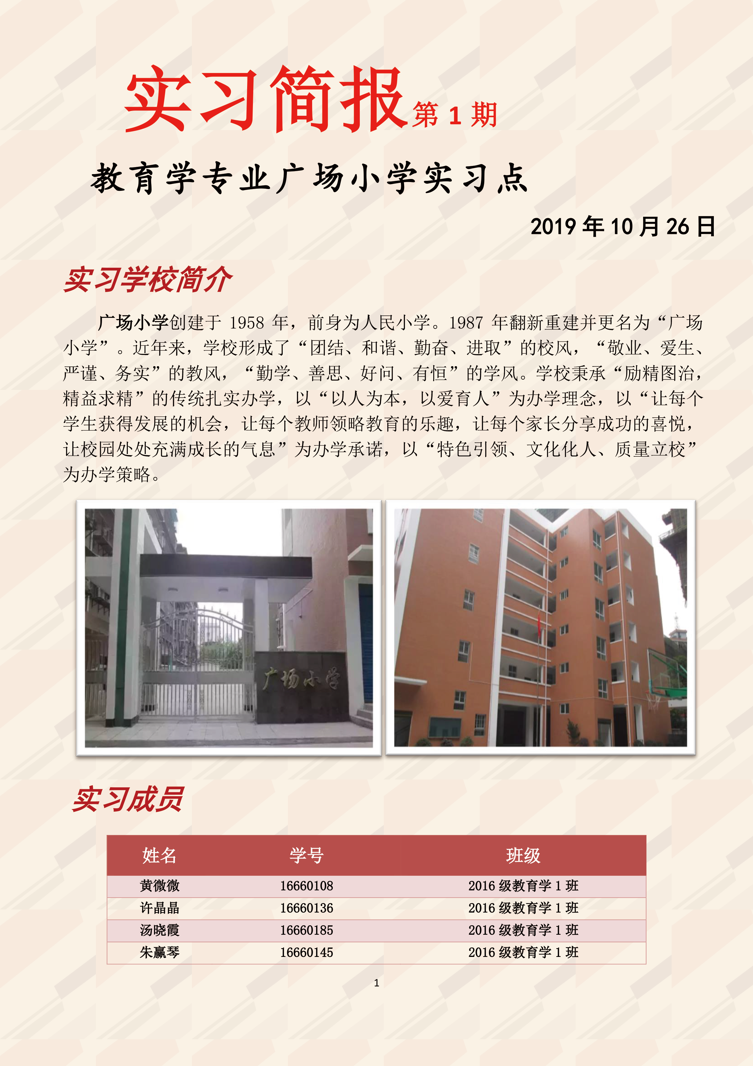 教育学专业实习简报:广场小学实习组第一期