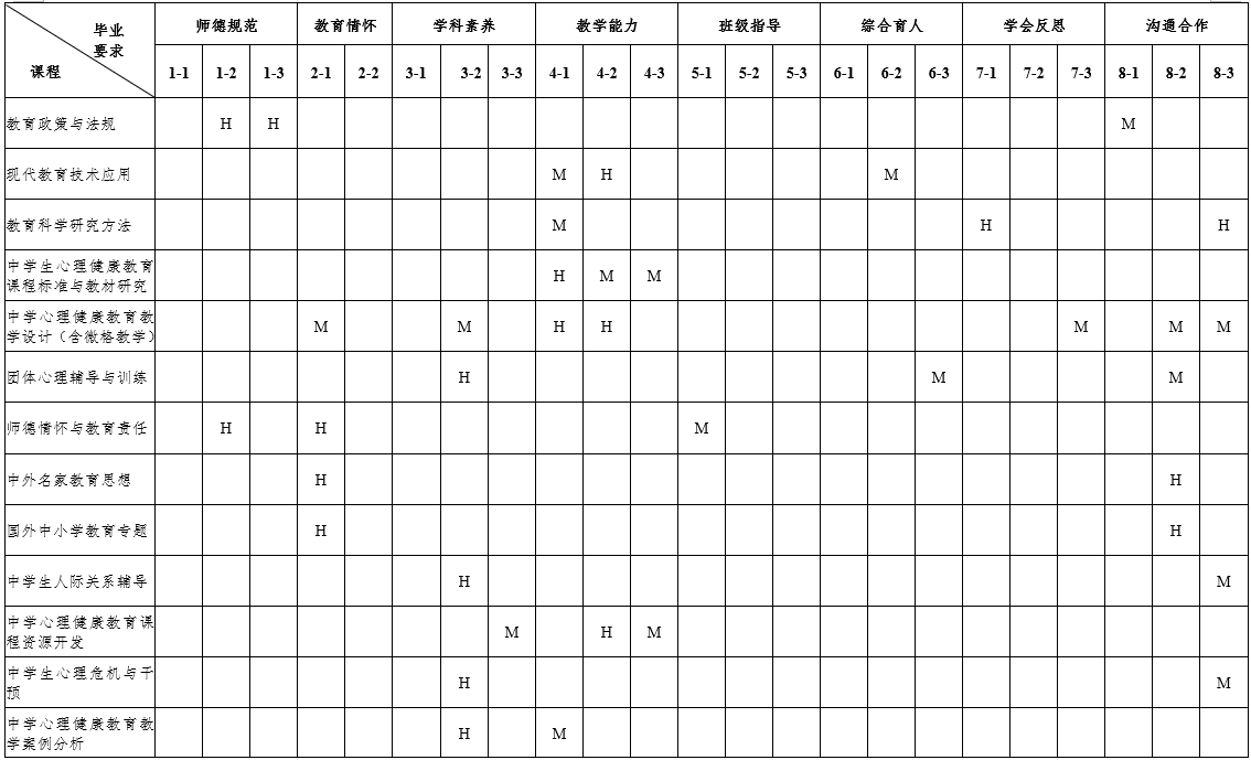 具体而言,本专业毕业生应在如下方面达到中学心理健康教育教师标准: