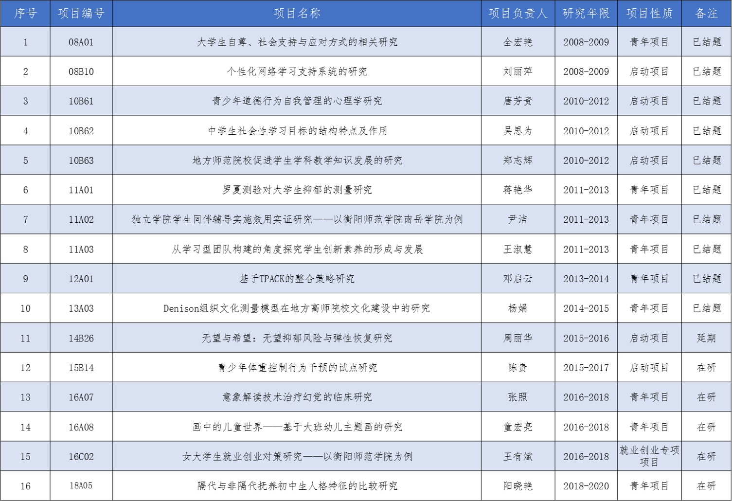 2008—2018年PA视讯平台科学基金科研立项项目(PA视讯平台)
