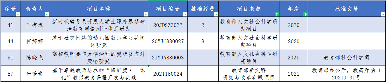 2020—2021年国家级、教育部科研项目(PA视讯平台)