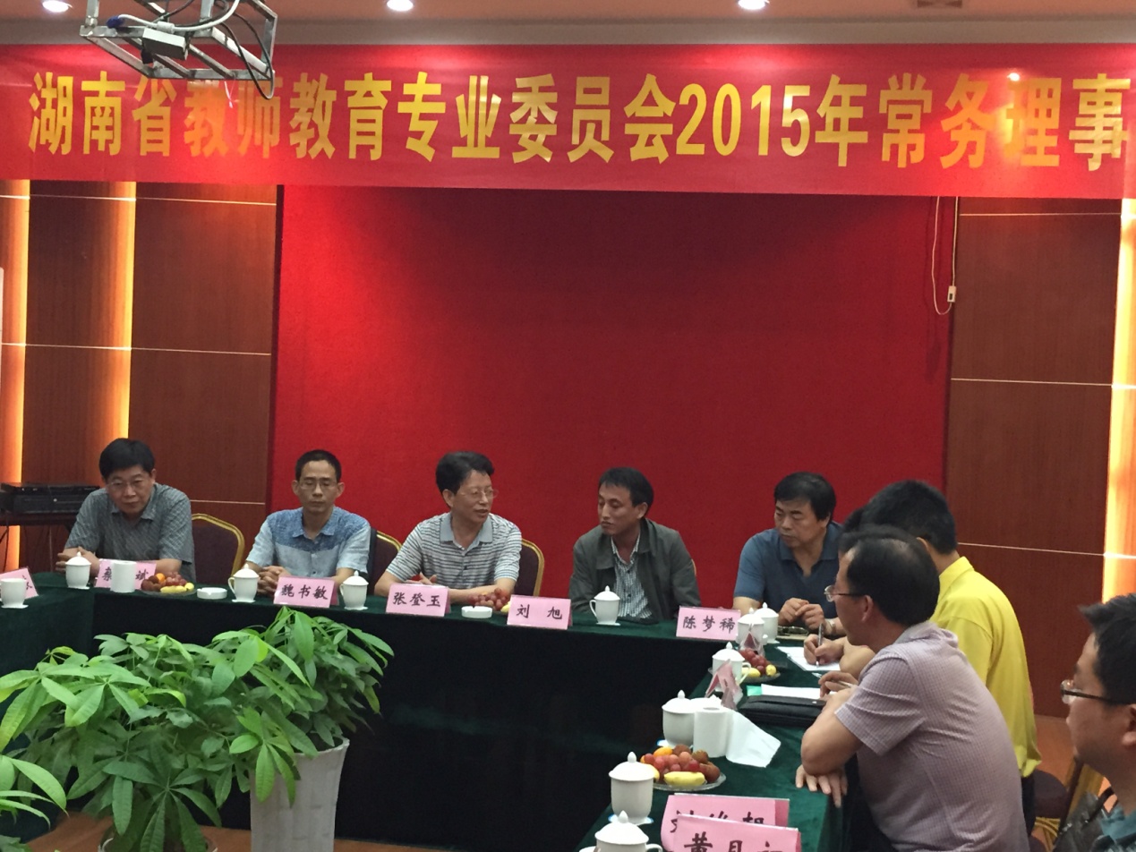 2015年5月30日,湖南省湖南省教师教育专业委员会2015年常务理事会议在我校召开。教师教育专业委员会理事长、湖南师范大学刘旭教授及其他兄弟院校的常务理事出席了此次大会,我校出席此次大会的有副校长张登玉教授、教务处处长罗文教授、PA视讯平台院长唐芳贵教授、初等教育学院院长魏书敏教授等。