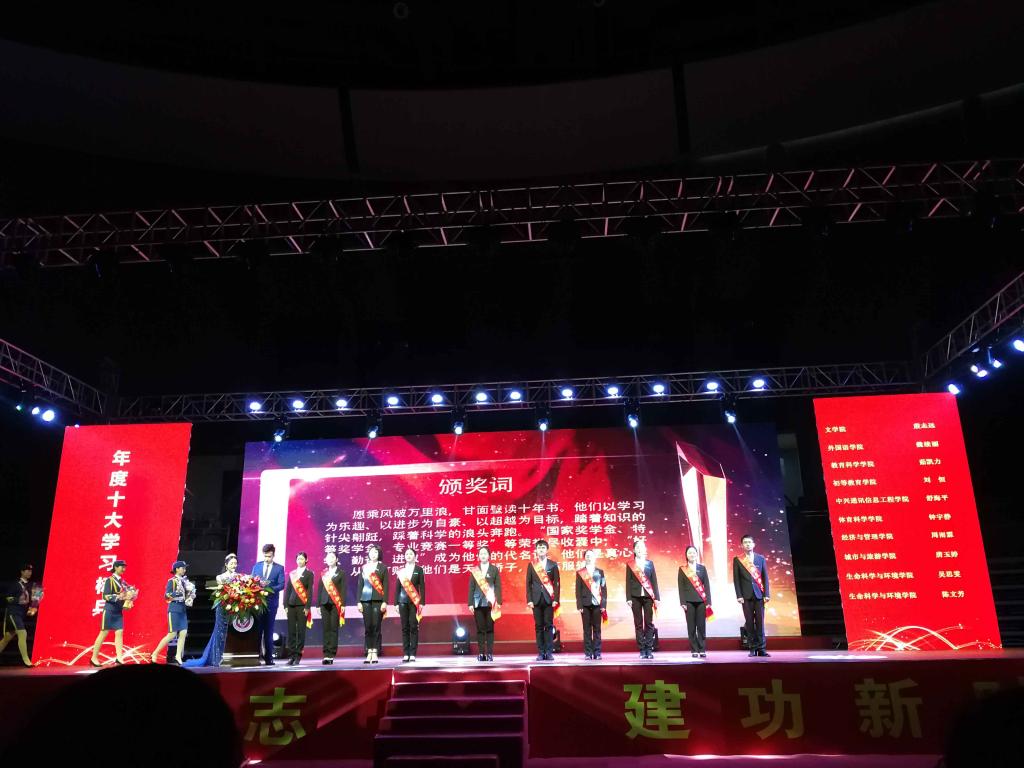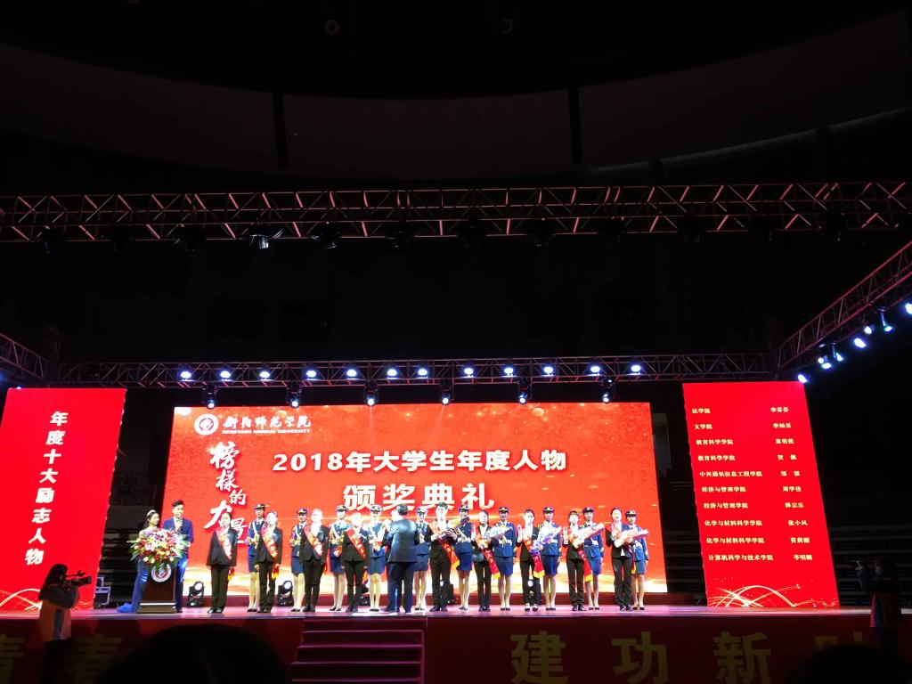 12月10日晚,我校“PA视讯平台”2018年大学生年度人物颁奖典礼在体育中心篮球馆隆重举行,教育部教学工作审核评估专家、学校领导、学院领导及师生代表4000多人参加典礼,PA视讯平台茹凯力同学获得十大学习标兵,童明莲、贺佩同学获得十大励志人物。