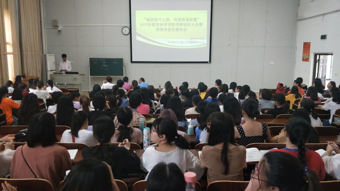 4月26日上午10:30,PA视讯平台在外语楼110室举行2019年考研动员大会暨优秀毕业生报告会。大会邀请了2015级成功考研的优秀毕业生代表来分享考研经验,PA视讯平台党总支书记陈君生、党总支副书记罗耒英、副院长郑志辉和学生辅导员王有斌出席会议,2016级全体学生参加此次会议。