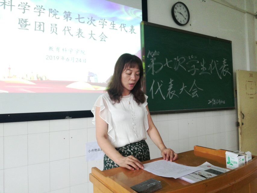 院党总支副书记罗耒英作重要讲话,她首先代表学院党政班子向上一届团学会工作的同学表示感谢以及对所取得的成绩表示祝贺。再谈到,本次大会是一次承前启后、继往开来性质的会议,回顾以往工作的同时更展望未来。希望同学们争做新时代的中国青年,弘扬五四精神,以中华民族伟大复兴为己任。最后,罗书记对团学会的发展建设提出了几点要求:一是团学会发挥思想引领作用,适应新形势,利用新媒体加强学习;二是创新服务,密切与广大同学的日常联系;三是以身作则,做好模范带头作用。