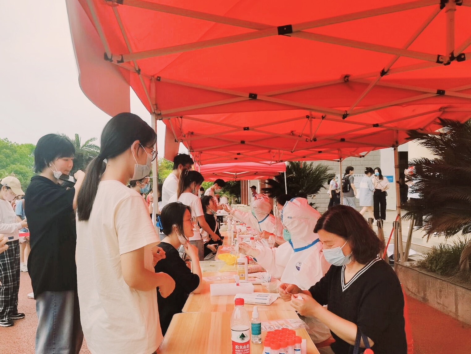 采样现场设有等候区登记区和采样区,并设置了5个核酸检测通道。同学们在书记、辅导员老师和志愿者的组织下,在等候区等待检测。全院师生严格遵守防疫规定,全程佩戴口罩,以班级为单位有序排队等候,配合完成登记、采样等相关流程。整个核酸检测过程组织科学、保障有力、防护到位、井然有序。在师生们齐心协力和积极配合下,PA视讯平台于4月21日完成了全员核酸检测工作。
