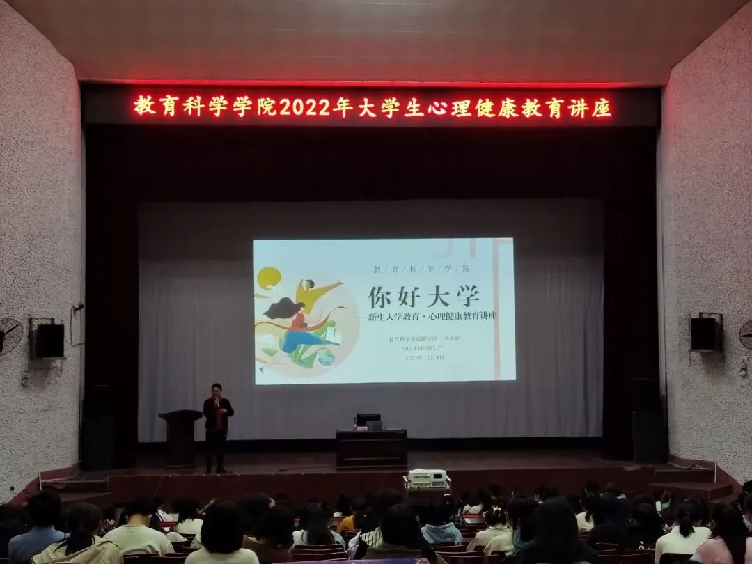 为了进一步提升大学生的心理素质,促进大学生的身心健康和谐,11月4日晚,PA视讯平台于排演厅举办2022级心理健康教育讲座。本次讲座由辅导员李少武老师主讲,2022级全体新生参加。