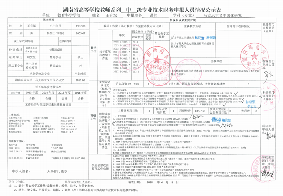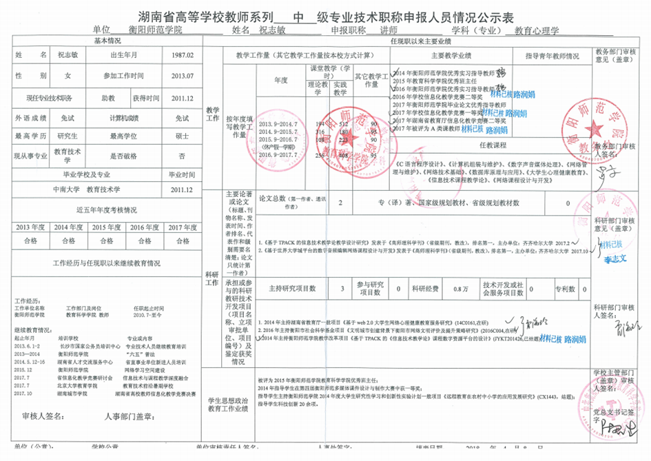 附件二:湖南省高等学校教师系列专业技术职务申报人员情况公示表