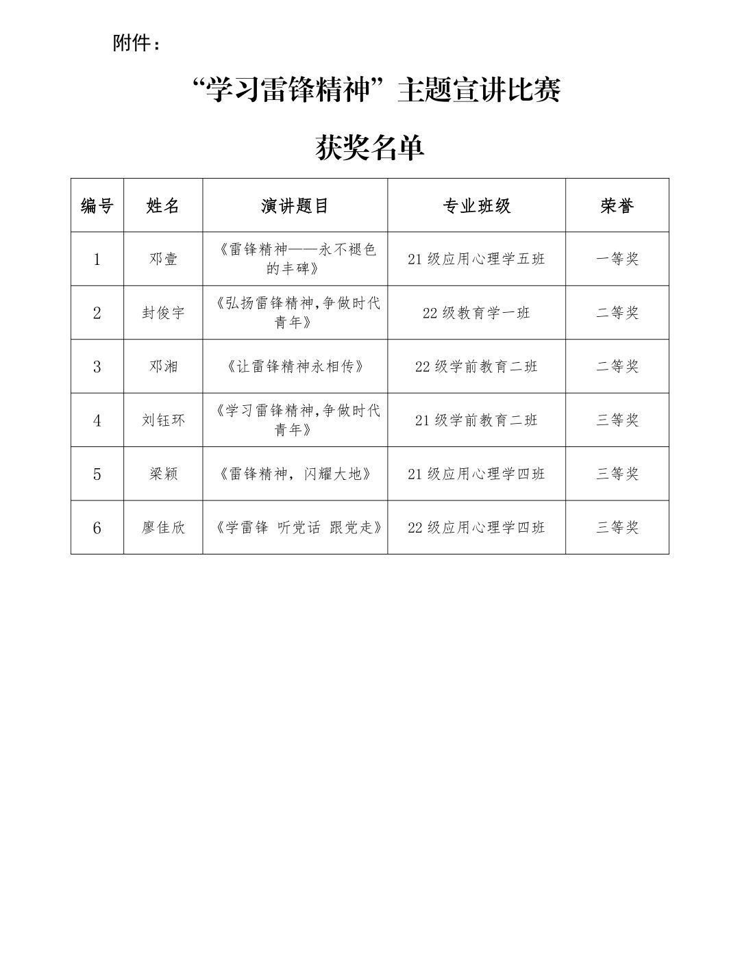 附件:“学习雷锋精神”主题宣讲比赛获奖名单表