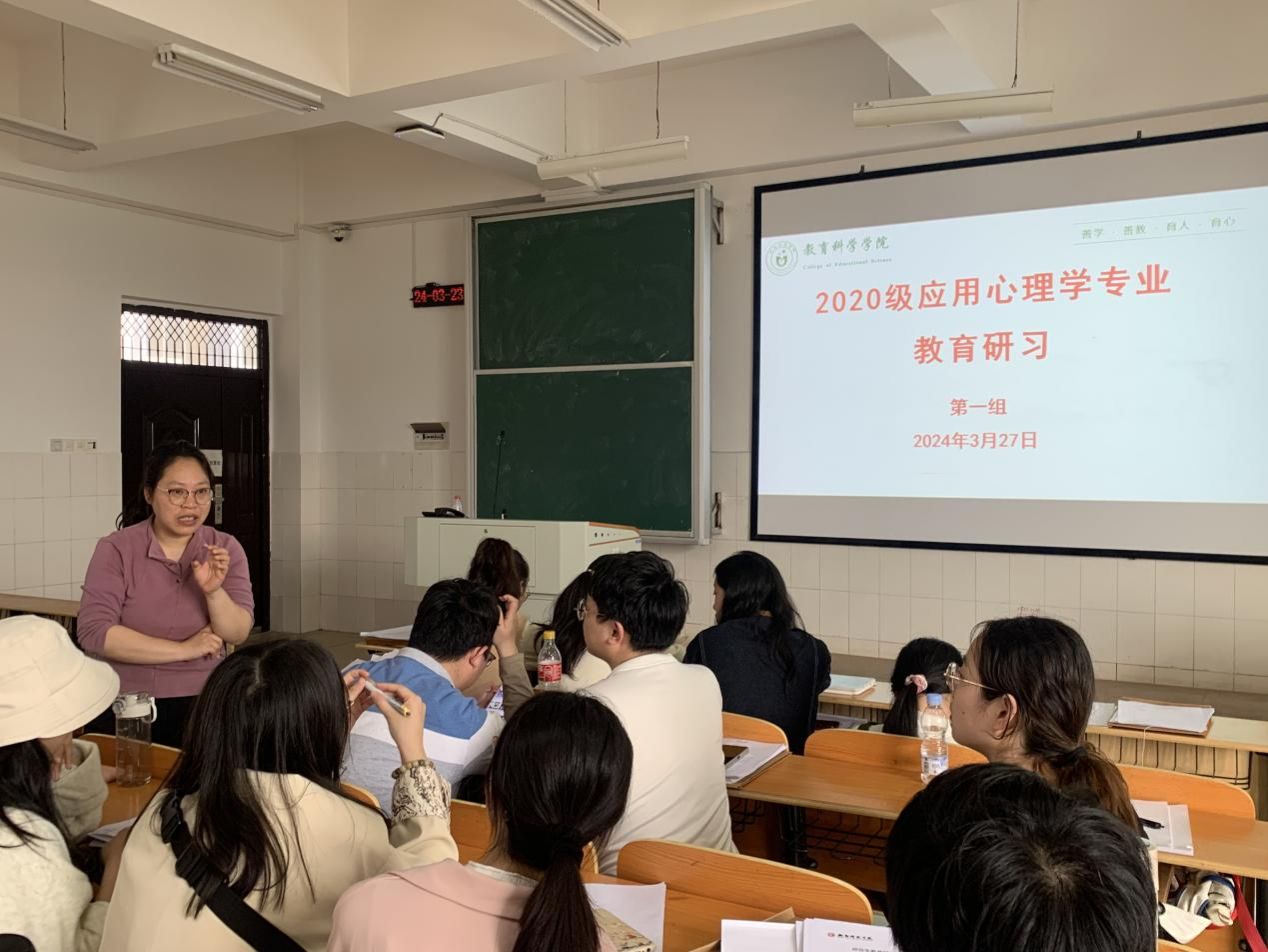 为巩固和拓展专业教育实习成果,深入总结反思教育实习的成功经验,促进“理论—实践—再理论”的循环提升,进一步引导师范生树立正确的教育理念,提高教育理论水平和教学实践能力,增进教育教学智慧,在心理学系刘罗、刘世瑞、陈贵、卢鑫、张照等5位老师的共同指导下,PA视讯平台应用心理学专业2020级160名学生于3月23日——3月29日在东校区文科楼开展了为期一周的教育研习工作。在此次教育研习活动中,同学们积极分享了在实习学校的所见所闻,以“研”的视角深入探讨了实习中的得与失,并通过课堂教学展示展现了自己的成长与收获。通过聚焦“6研”——研究课程、研究教材、研究学生、研究课堂、研究校园、研究自己——来全面检视教育实习,巩固和升华实习成效。