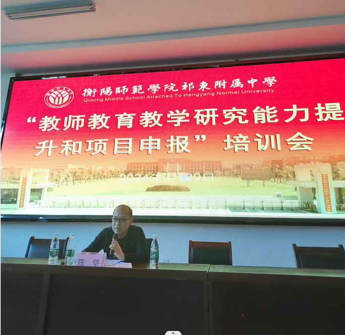 随后,陈坚院长以“中学教师教育教学研究能力提升及项目申报”为主题,为在场的师生们带来了一场精彩的培训。他结合多年的教育实践经验,深入浅出地讲解了教育教学研究的基本方法、项目申报的流程及注意事项。同时,他还分享了一些成功的案例,让师生们对教育教学研究有了更直观、更深刻的认识。