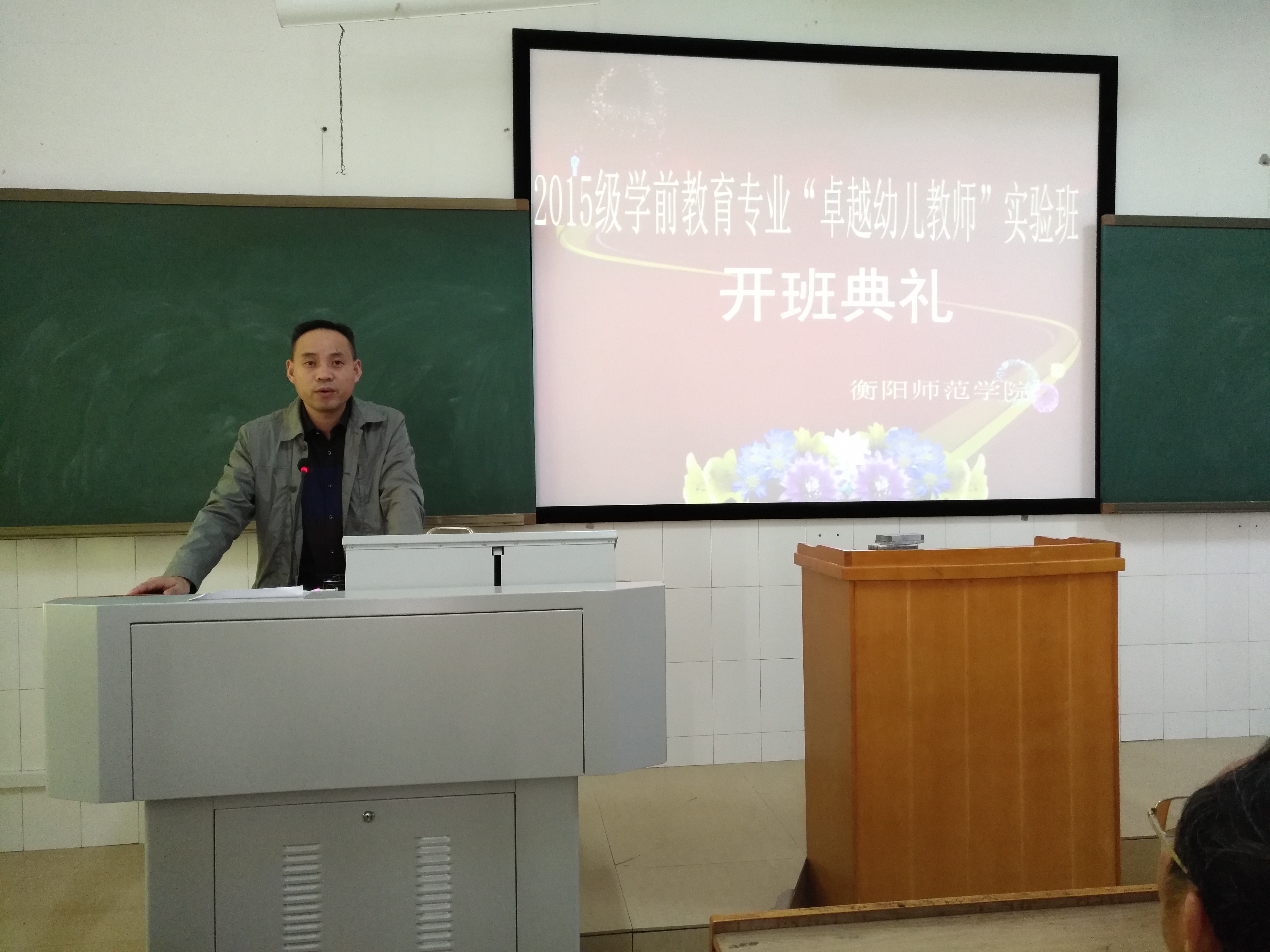 2017年10月24日,在文D303室,迎来了PA视讯平台2015级学前教育专业“卓越幼儿教师培养实验班”开班仪式。开班仪式特邀了湖南师范大学学前教育系主任、博士生导师杨莉君教授。学院书记陈君生教授、院长唐芳贵教授、副院长蒋湘祁副、副书记罗耒英、副院长郑志辉等出席开班仪式。开班仪式上,PA视讯平台院长唐芳贵教授对入选本届“卓越幼儿教师培养实验班”的学生提出了殷切的希望,学前教育专业负责人全宏艳老师宣读了入选者名单,郑志辉副院长就“卓越幼儿教师培养”的发展规划做了简要说明。