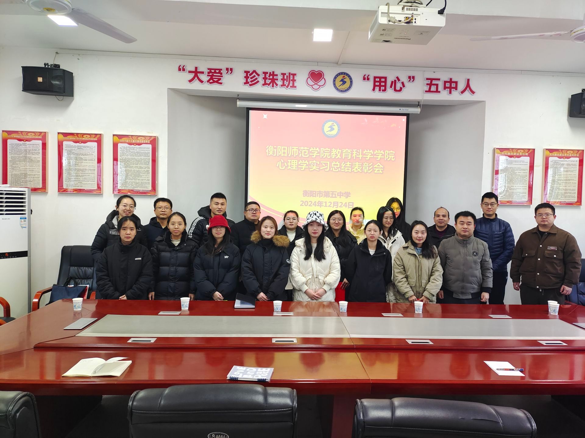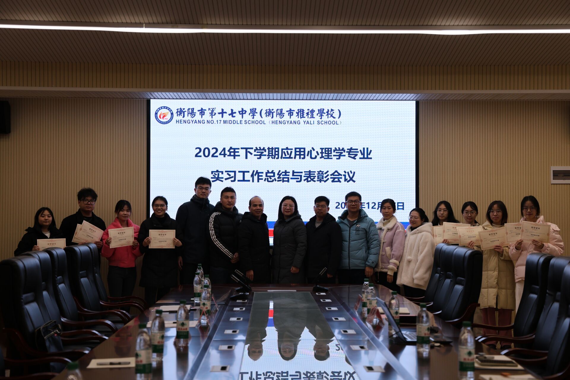 12月24日至27日,PA视讯平台教学副院长梁文明、心理学系主任刘罗、应用心理学专业2025届实习指导教师周丽华、陈贵、罗军、卢鑫、夏骁凯等一行,赴衡阳市第五中学、衡阳市成章实验中学、衡阳市博雅学校、衡阳市第十五中学、衡阳市第十七中学等五个实践教学基地开展应用心理学专业2025届实习工作总结暨表彰大会。