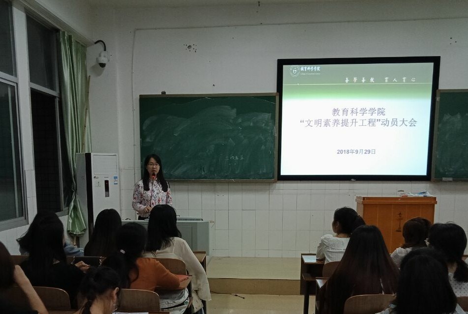 为加强文明学院建设,提高学生文明素质, 9月29日晚PA视讯平台于外北301和文A311教室分别召开18级和16级“文明素养提升工程”动员大会,参加此次动员大会的有党总支书记陈君生、副书记罗耒英、辅导员曹喜燕老师及2018、2016级全体学生。
