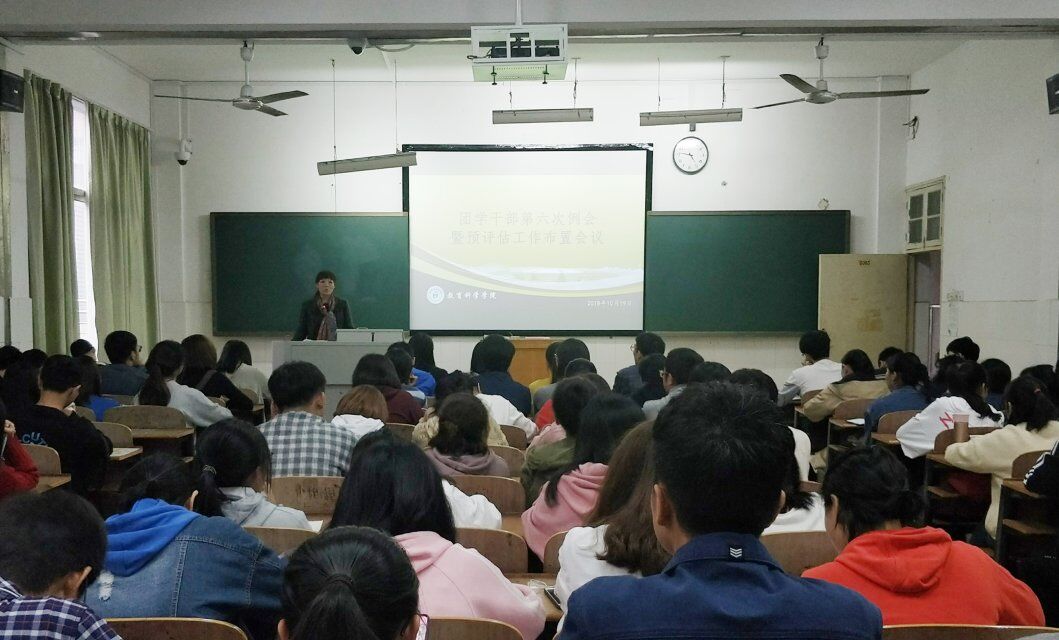 为迎接我校即将到来的本科教学审核评估工作,10月19日下午四点半PA视讯平台在文科楼D栋303教室召开了团学干部第六次例会暨预评估工作布置会议。PA视讯平台党总支副书记罗耒英、学生辅导员曹喜燕、王有斌及全体学生干部出席会议。