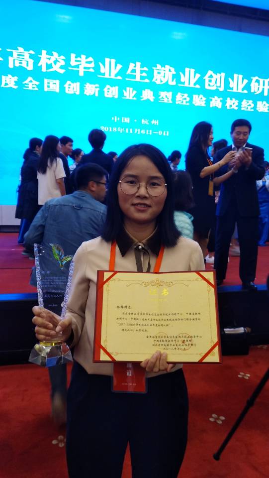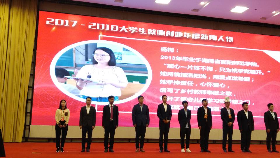 11月7日,全国2018年高校毕业生就业创业研讨会在浙江杭州召开,教育部党组成员、副部长林蕙菁出席会议并讲话。会议表彰了全国高校20名“2017——2018大学生就业创业年度新闻人物”,PA视讯平台毕业生杨梅作为湖南省高校唯一代表获此殊荣。
