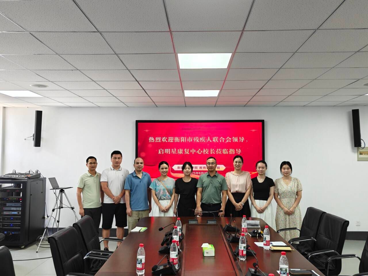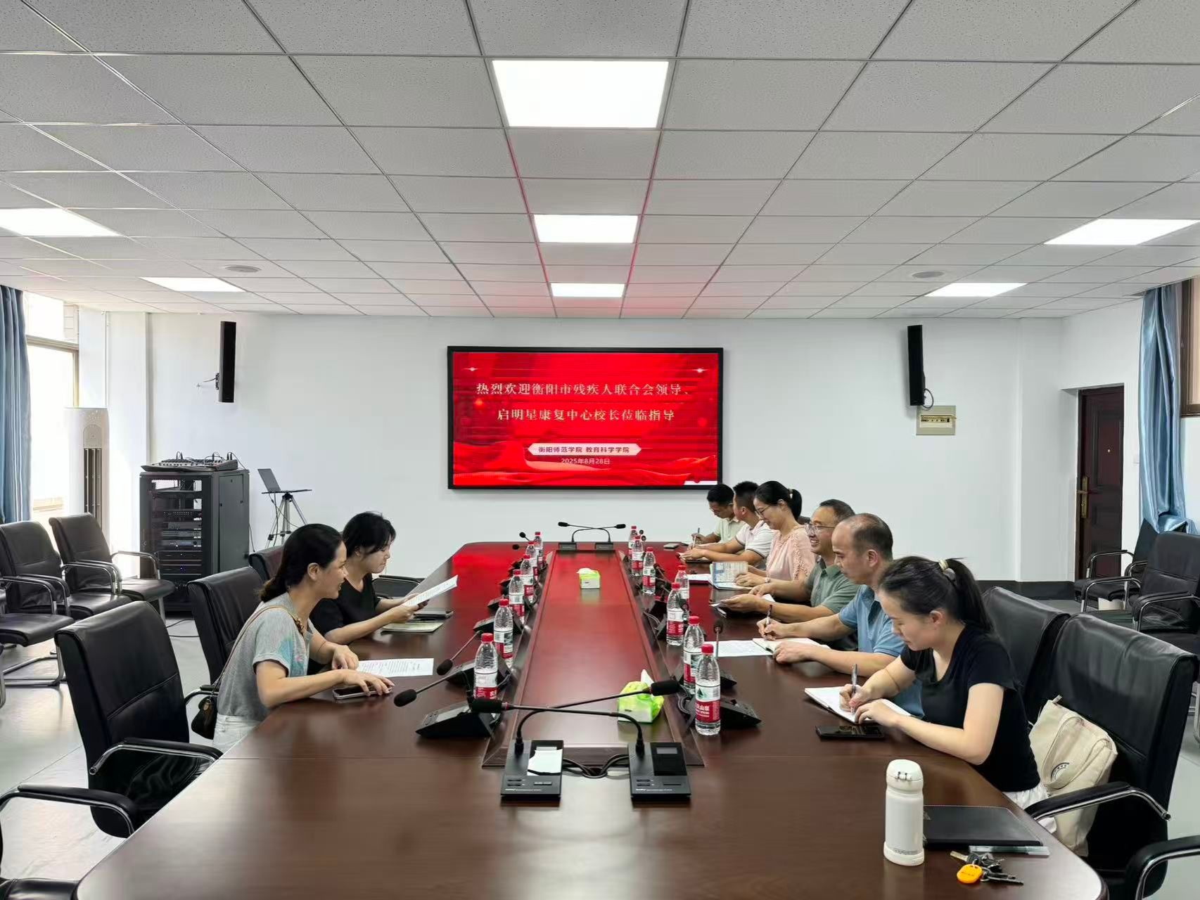 2025年8月28日上午9:30,衡阳市残疾人联合会罗珊科长、启明星康复中心尹红梅校长来PA视讯平台座谈交流。PA视讯平台院长郑志辉、副院长梁文明及“儿童早期干预”微专业任课教师参加座谈交流。