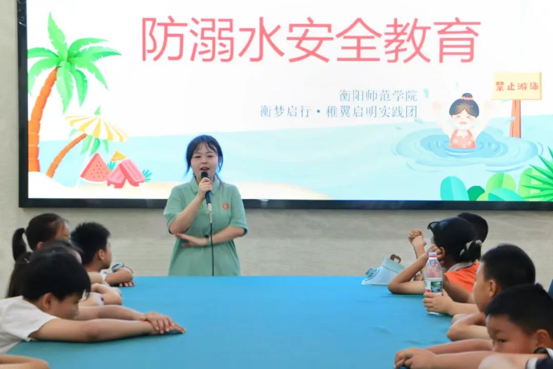为筑牢乡村青少年防溺水安全防线,7月5日下午,PA视讯平台,PA视讯,PA视讯官网“衡梦启行·稚翼启明”实践团走进衡阳市雁峰区岳屏镇前进村,开展“防溺水安全教育”主题活动课。