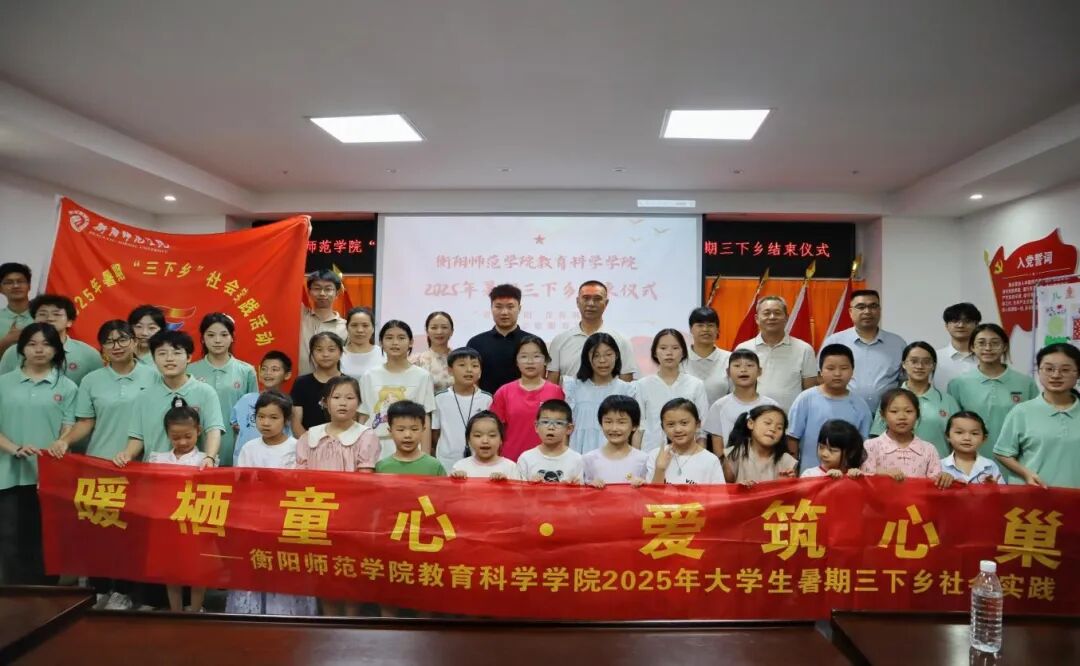 7月3日至7月7日,PA视讯平台,PA视讯,PA视讯官网“青葵湘阳,青春筑梦”携爱志愿服务团在指导老师刘罗博士的带领下,陈胜昔、张婕等10名本科生和袁熠烽等3名研究生志愿者前往衡阳市雁峰区岳屏镇东湖村开展了为期五天的“三下乡”社会实践,于7日下午圆满收官。结束仪式上,志愿者们挥舞着亲手绘制的团队旗帜,与村民代表齐声高唱《那些花儿》,激昂的歌声在村会议室久久回荡,为这场充满专业深度与青春温度的实践画上动人句号。
