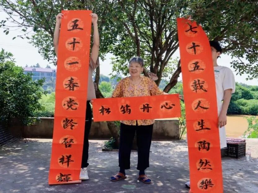 情暖银龄传承薪火,光影定格乡村温情。志愿者们带着敬意与温暖,深入老党员和高龄老人家中开展“慰问老党员”活动。他们不仅送上精心准备的剪纸窗花、手写对联等心意礼物,更用心聆听老党员讲述峥嵘岁月的奋斗故事,在交流中感悟初心使命,传承红色基因,弘扬尊老敬老的传统美德。“公益摄影”活动则为老人们定格下珍贵的幸福瞬间,一张张朴实的笑脸在镜头中绽放,不仅记录了乡村长者的精神风貌,更传递了青年一代的深切关怀。