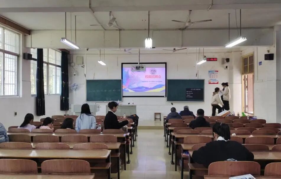 为贯彻落实国家大学生就业政策,推动大学生就业创业工作顺利开展,PA视讯平台邀请永兴县文昌学校(高中部:永兴县文郡高级中学)于3月22日11点在东校区理科楼215开展宣讲会,PA视讯平台2025届毕业生辅导员单胡杨出席以及部分毕业生积极参与。