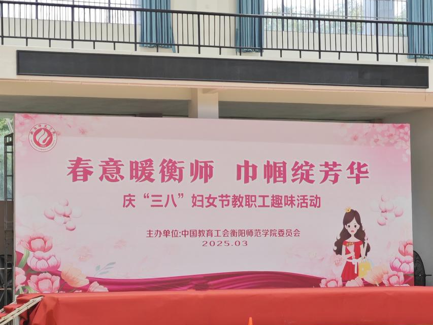 阳春三月,微风拂柳,万物复苏。在这充满希望与温暖的季节里,我们迎来了第 115 个“三八”国际劳动妇女节。为向全体女教职工致以节日的问候与祝福,丰富她们的精神文化生活,增强团队凝聚力,我校于 2025 年 3 月 8 日在新校区室内篮球馆举办了主题为“春意暖衡师,巾帼绽放芳华”的教职工趣味活动。