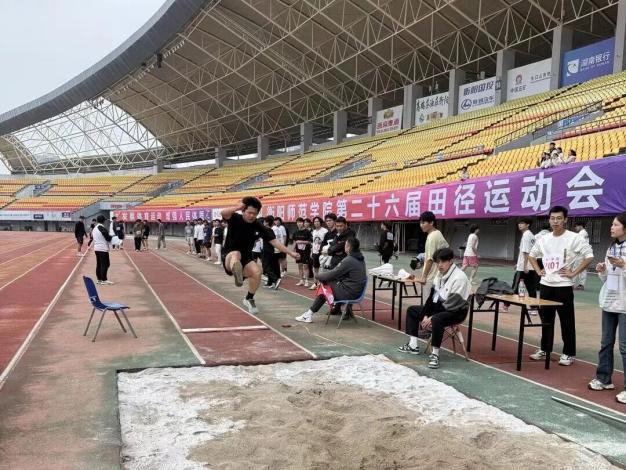 在跑道沙坑间