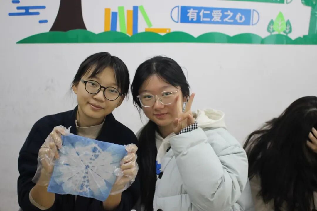 “这简直太神奇了,像在开启一个神秘的盲盒!”24级一位唐同学捧着自己创作的“霜花”兴奋地说道,“从设计、捆扎到见证图案最终呈现,整个过程让我深刻体会到匠人精神的深刻内涵和传统文化的智慧。”
