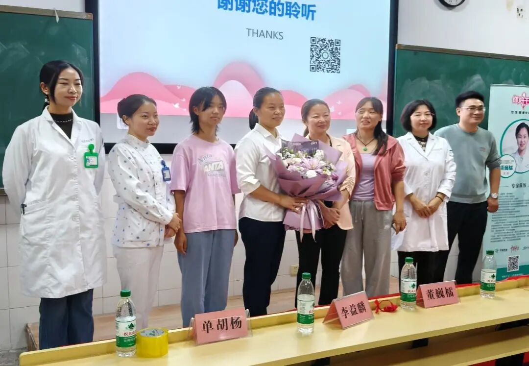 随后,活动转入义诊互动环节。为有疑问的新生提供“一对一”健康指导——无论是日常护理细节、常见健康误区,还是个性化的健康困惑,新生们都踊跃上前咨询。团队结合临床案例给出建议,从护理角度补充实用技巧,用易懂的语言化解大家的顾虑,现场交流氛围热烈。在义诊互动接近尾声时,志愿者欧楚怡手捧鲜花走向各位专家,代表全体新生表达感谢。