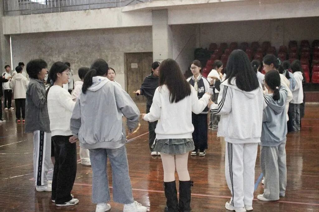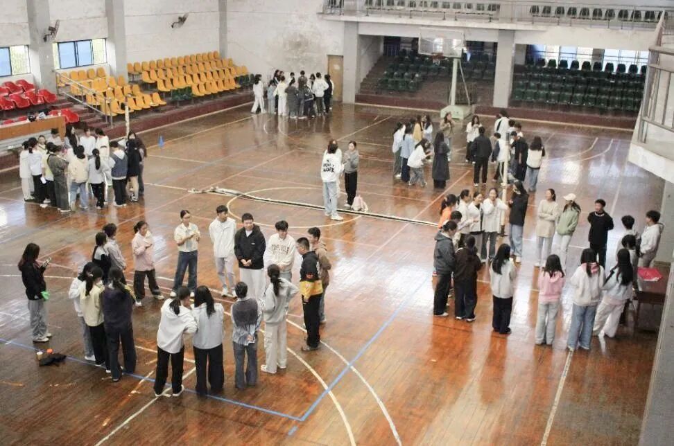活动伊始,同学们围成一个紧密的圆圈,在执行主席的引导下缓缓走动。大家一边调整步伐,一边为身边的同学轻轻捶背、捏捏肩,简单的动作搭配着清脆的笑声,瞬间驱散了初次相聚的陌生感,现场氛围逐渐升温。