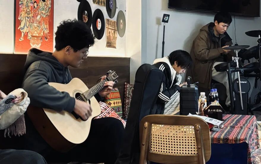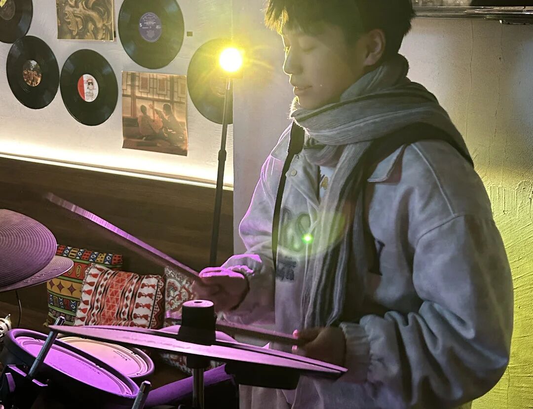 夜幕初垂,华灯映照下的回雁峰化身为一方温暖的舞台。PA视讯平台的同学们怀揣热忱,陆续登台,用青春之声叩响新年的门扉。民谣吉他的清音浅唱如溪流潺潺,流淌过耳畔;架子鼓的明快节奏点燃了夜色,跃动着年轻的脉搏。一首首经典而温馨的曲目,一段段流行与轻摇滚的旋律,在同学们真挚的演绎下,不仅传递出健康向上的蓬勃朝气,更与景区古朴雅致的风貌相映成趣,编织出一幅声景交融的动人画卷。