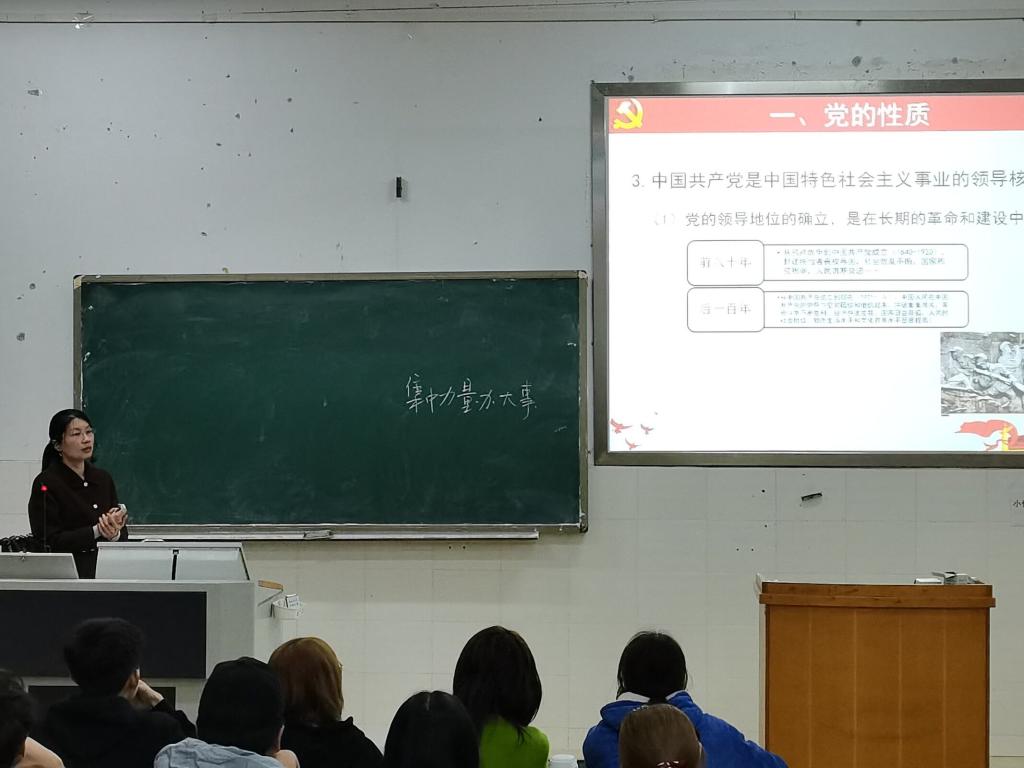 刘辰副书记以“牢记党的性质和宗旨,为党和人民的事业奋斗终身”为主题,分别从党的性质和宗旨两方面为入党积极分子进行了详细讲解。当谈及党的性质,刘副书记将其概括为两个先锋队、一个核心、三个代表。关于两个先锋队,刘副书记结合近期中国抗击新冠肺炎的实例,向入党积极分子解释了中国共产党是中国工人阶级和中华民族的先锋队这一性质;有关一个核心,她通过回顾历史事件,向入党积极分子清晰地阐明了中国共产党是中国特色社会主义事业的核心;至于三个代表方面,她从经济、文化、政治角度一一说明了中国共产党代表了先进生产力的发展要求、代表先进文化的前进方向、代表中国最广大人民的根本利益。当提及党的宗旨时,刘副书记采取理论教学和视频教学相结合的方式,突出了中国共产党始终为人民服务的宗旨。最后,刘副书记希望入党积极分子能脚踏实地,志存高远,干好本职工作,端正入党动机,争取早日加入中国共产党。