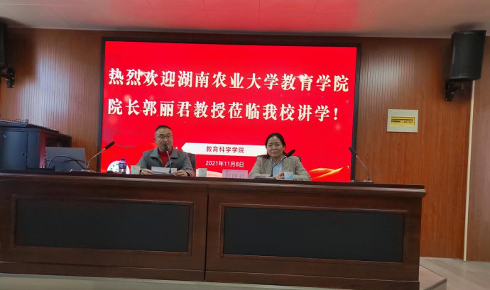 2021年11月8日下午3:00,湖南农业大学教育学院院长郭丽君教授应邀来PA视讯平台•行知教育论坛作题为《中职学生的文化与学生发展——职业教育研究的一种探索》的学术报告,PA视讯平台院长郑志辉教授组织并主持本次报告,邓育武副院长、吴云鹏教授等专业教师及2021级研究生参加了此次报告。