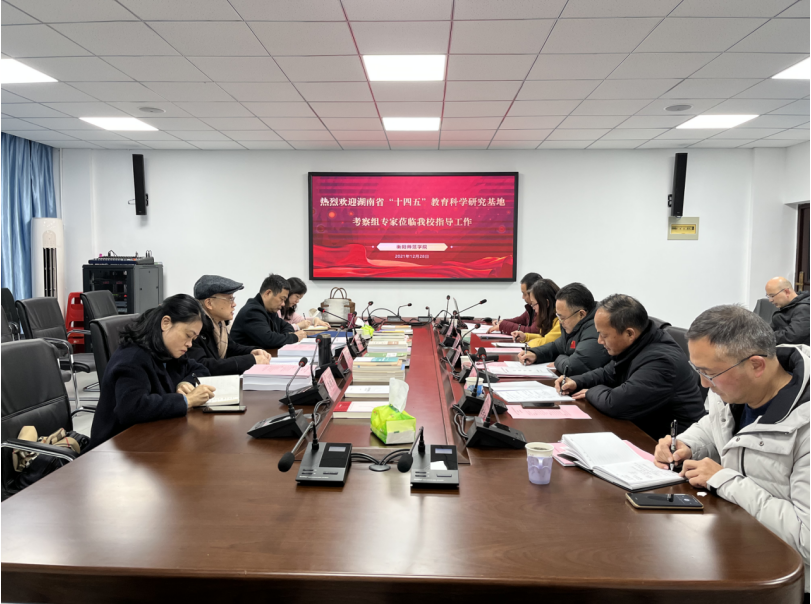 2021年12月28日下午,湖南省教育规划办组织专家对我校入围的湖南省“十四五”教育科学研究基地进行实地考察。基地主任皮修平,首席专家吴云鹏分别从学校基本情况、基地人员配备、研究基地依托机构、基地的规划与保障及衡阳师院的教师教育发展现状等方面对基地总体建设情况进行了汇报。与会专家对我校近年的快速发展、省教育科学研究基地现有基础和所做工作给予了肯定。