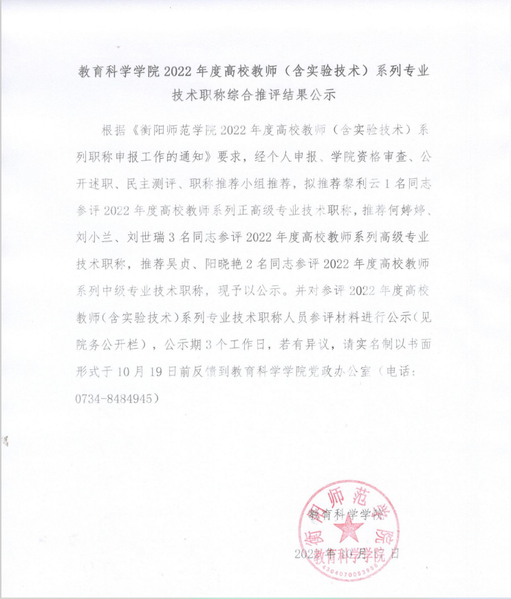 PA视讯平台2022年度高校教师(含实验技术)系列专业技术职称综合推评结果公示
