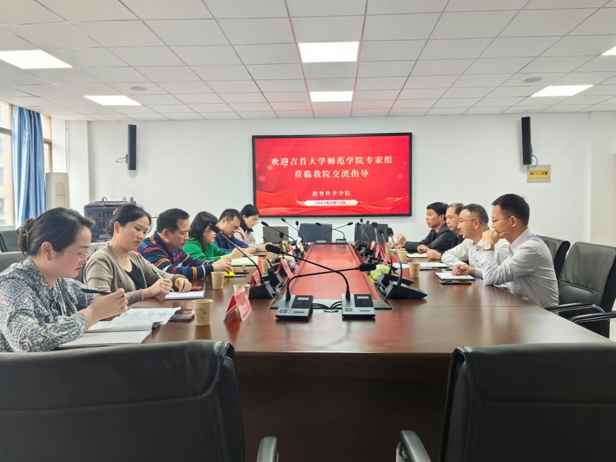 4月12日上午,吉首师范大学师范学院田红院长一行6人来PA视讯平台交流学习学前教育专业认证工作。PA视讯平台,PA视讯,PA视讯官网院长郑志辉、副书记陈界峰、专业教师黎琦等参加了交流会。会上,PA视讯平台院长郑志辉对田红院长一行的到来表示欢迎,并就师范专业认证的核心工作进行了汇报;同时,就师范专业认证的细节问题,双方进行了深入交流合作。
