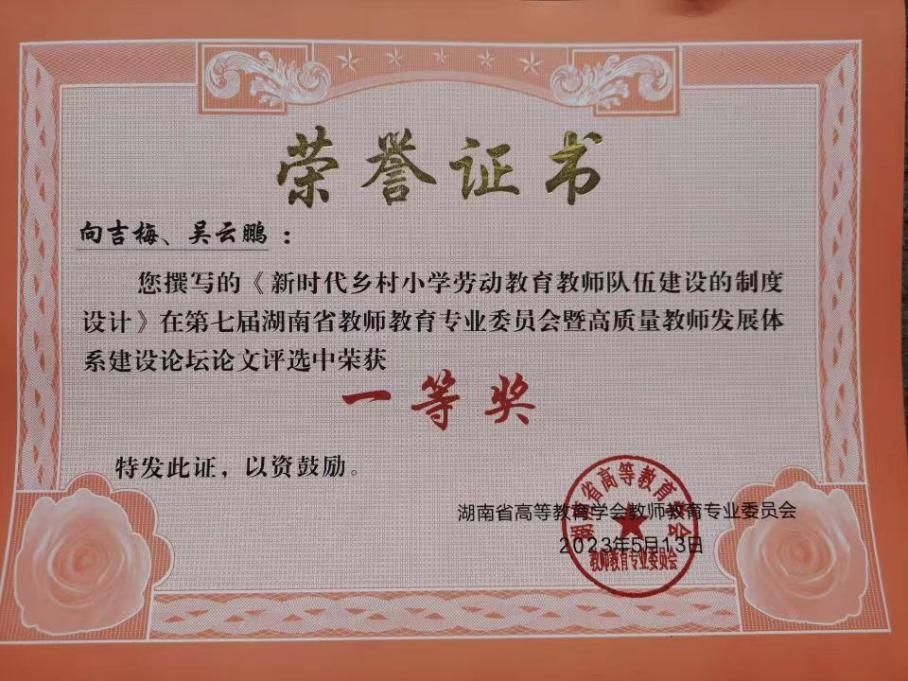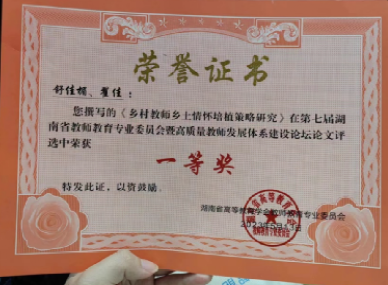 2023年5月12至14日,湖南省教师教育专业委员会暨高质量教师发展体系建设论坛“乡村振兴·人工智能·教师发展”于常德湖南文理学院召开。经专家评审,PA视讯平台研究生共有9篇论文获奖:其中(计第一作者)一等奖两名——舒佳楣、向吉梅;二等奖3名——郭鑫、曾慧、罗莉;三等奖4名——隆婷、黎利、张茜、戴橙(该论坛共收到136篇投稿,设定为一等奖20篇,二等奖30篇,三等奖40篇)。