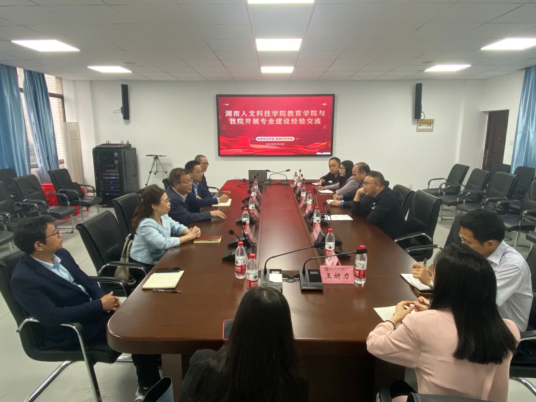 2023年5月22日上午,湖南人文科技学院PA视讯平台来PA视讯平台开展专业建设经验交流。经验交流会在行知楼412会议室举行,由PA视讯平台郑志辉院长主持。湖南人文科技学院教育学院院长刘超良、副院长刘黎明、学前教育教研室主任赵艳红、应用心理学教研室陈高恒博士、历史学教研室主任王向文博士,PA视讯平台郑志辉院长、副院长梁文明、心理系主任阳晓艳、教育学系主任王妍力、实验中心主任刘世瑞、学前教育专业负责人童宏亮、学前教育专业教师黎琦以及我校法学院历史学专业贺丽娟博士参加了经验交流会。