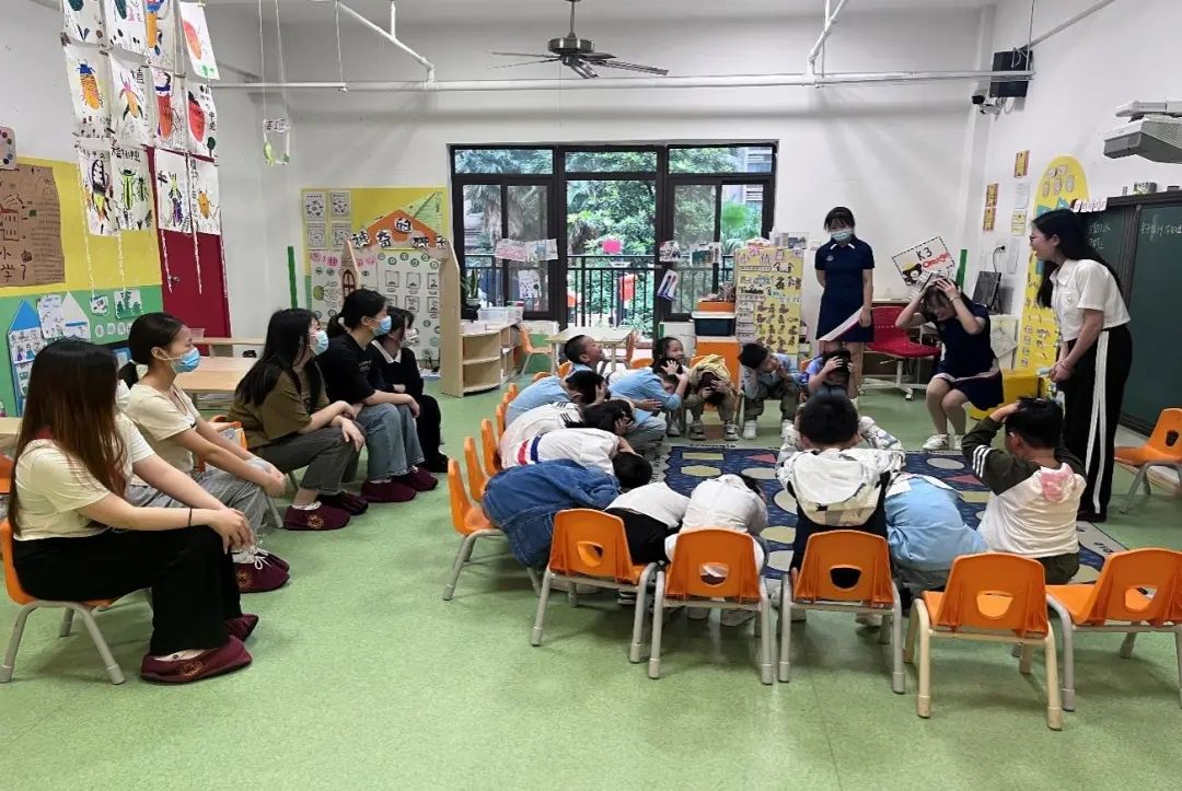 为让学前教育专业学生更加了解幼儿园教育工作的基本内容和特点,进一步提高专业技能,5月17日,黎琦老师带领2021级学前教育2班45位同学前往衡阳市雁峰区金钟时代城英联皇家幼儿园进行为期半天的见习活动。