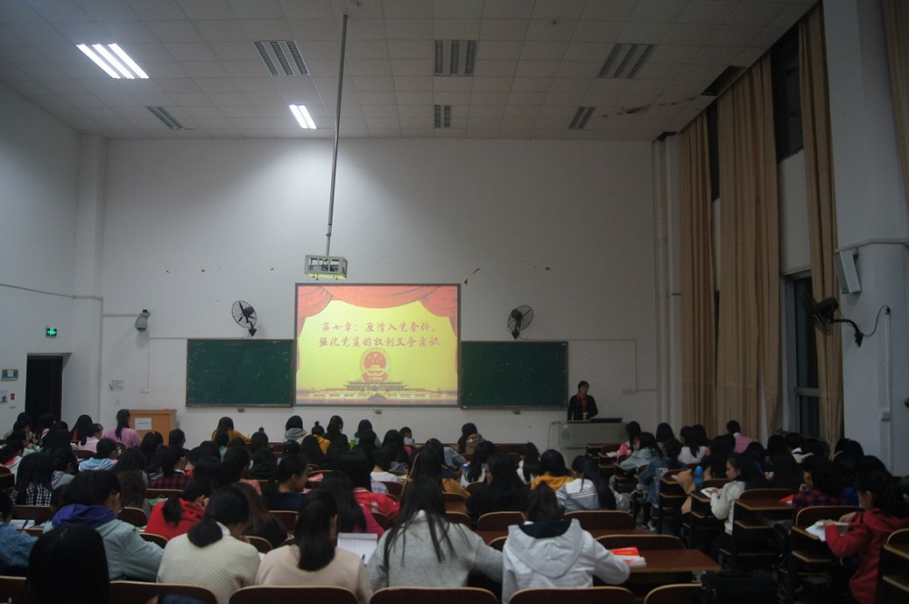 10月26日晚,PA视讯平台党总支副书记罗耒英于外语楼北301为新生们讲解党课培训的第七课——党员的标准与发展党员的程序。