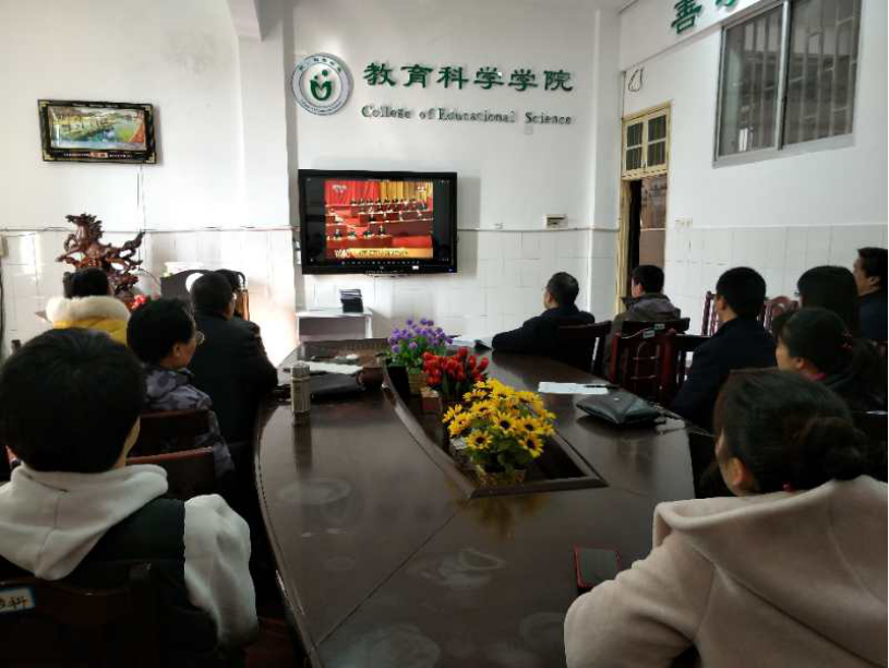 10月18日上午10:00,PA视讯平台党总支于文综楼B309会议室组织师生党员集中收看了庆祝改革开放四十周年大会电视直播,学院党政班子成员、党员和部分没课的师生观看了大会直播。
