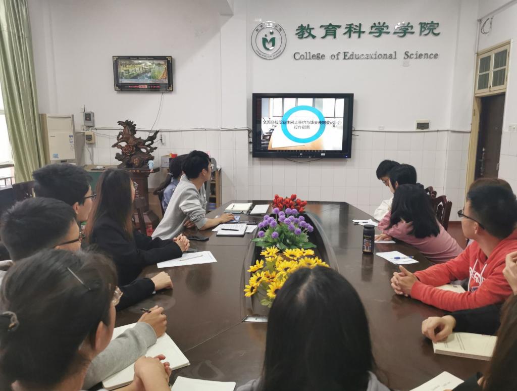 辅导员杨威在会上重点阐述了毕业生党员如何配合学院开展就业工作,同时向全体毕业生党员演示了如何使用教育部网签系统上传就业材料。他强调毕业生党员充分发挥党员先锋模范作用,要带头就业,同时也积极为未就业的毕业生提供精准服务,并对党员“促就业”服务工作进行了具体的布置安排。