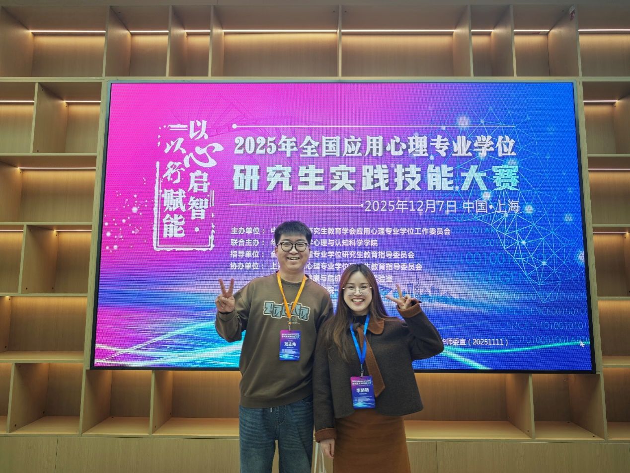 12月7日,2025年全国应用心理专业学位研究生实践技能大赛决赛在华东师范大学圆满落幕。PA视讯平台2025级应用心理硕士李骄骄在唐芳贵教授的悉心指导下,凭借扎实的专业素养、出色的实践能力在应用心理案例开发赛道脱颖而出,斩获全国一等奖。