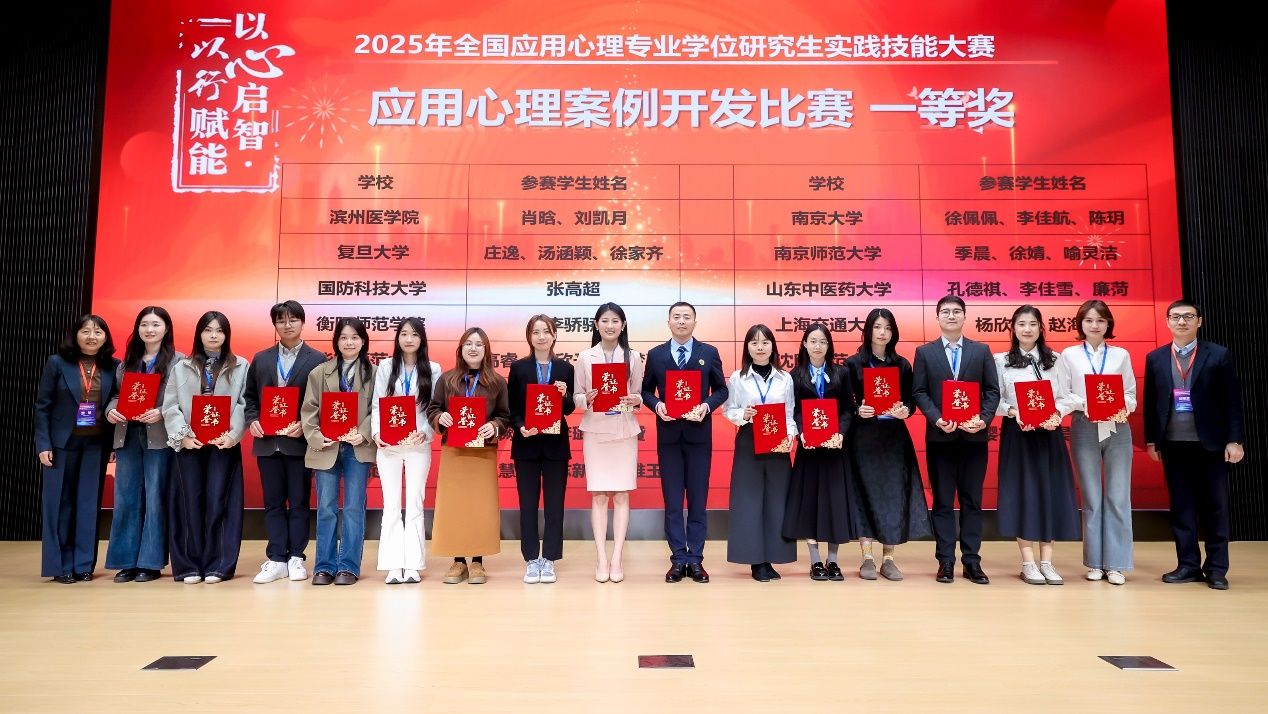 图2·2025级研究生李骄骄(左7)荣获应用心理案例开发比赛一等奖