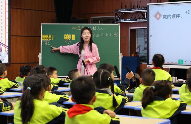 龙倩老师为一年级学生带来《两位数大小比较》数学课,以趣味游戏导入,引导学生操作教具自主探究,培养其知识与能力。