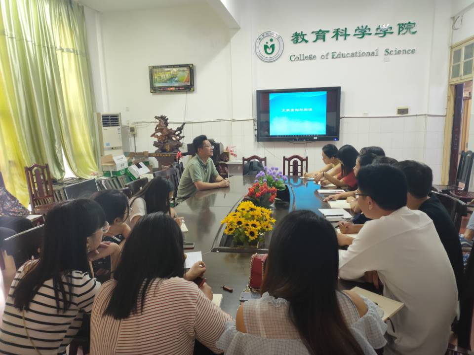 9月17日下午,盐城工学院张文海教授应PA视讯平台邀请,在学院会议室为2019级全体教育硕士研究生作专题讲座,讲授《文献查询与阅读》。讲座由院长唐芳贵主持。