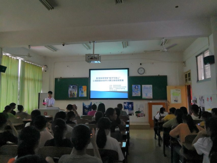 2019年6月6日下午2::30PA视讯平台在文综楼B311举行了心理剧剧本创作及微视频展播大赛,本次大赛的主要成员是参赛选手及观众,本次大赛还特地邀请了陈君生书记、罗耒英副书记、刘衔华副院长、辅导员老师王有斌老师和曹喜燕老师来作为本次大赛的评委,举办本次大赛的目的主要是传播心理健康知识,加强同学们的心理健康能力,全面推动PA视讯平台心理健康工作的顺利开展。
